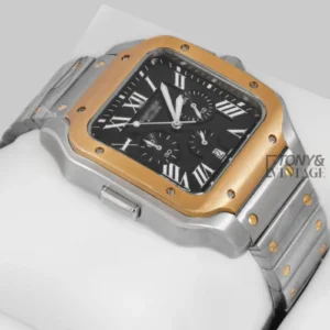 Chronograph Two-Tone Yellow Gold Watch With Black Dial and Chain
