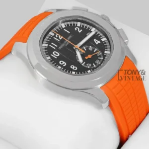 Down Second Silver Watch with Black Dial and Orange Rubber Strap
