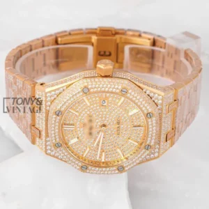 Full Stone Yellow Gold Dial Automatic Watch