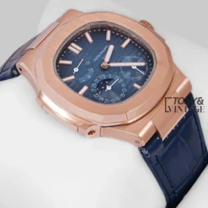 Rose Gold Case Blue Dial Leather Strap