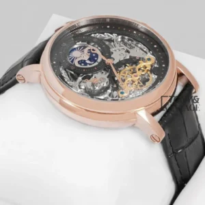 Tourbillon Moon Phase Rose Gold Case Skeleton Dial Leather Strap Men’s Watch