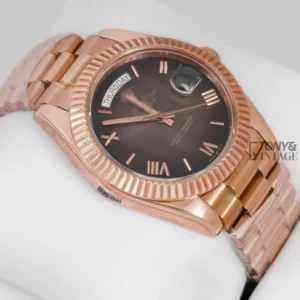 Rose Gold Gray Dial Roman Numeral & Fluted Bezel
