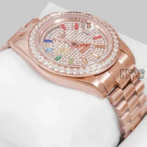 Rose Gold Fully Stoned Dial & Bezel Automatic Watch