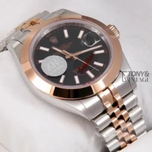 Rose Gold Two Tone Black Numeral Dial & Stone Bezel