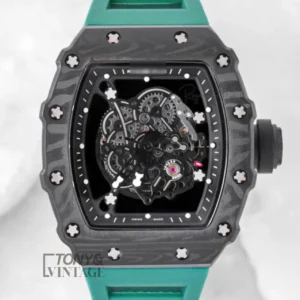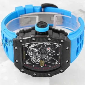 “Automatic Black Watch With Skeleton Dial and Blue Rubber Strap “