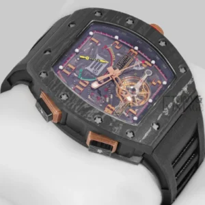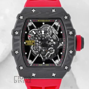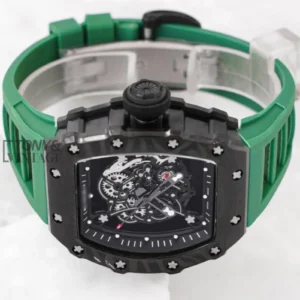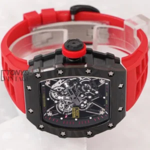 Automatic Black Watch With Skeleton Dial and Red Rubber Strap