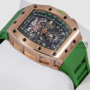 Chronograph Rose Gold Watch With Green Rubber Strap