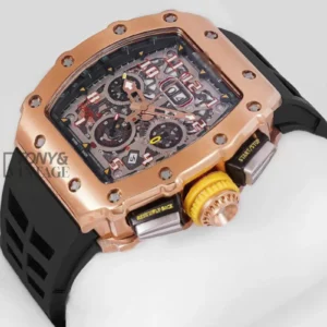 Rose Gold Chronograph Automatic Watch With Black Rubber Strap