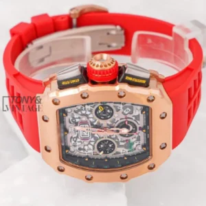 Rose Gold Chronograph Automatic Watch With Red Rubber Strap