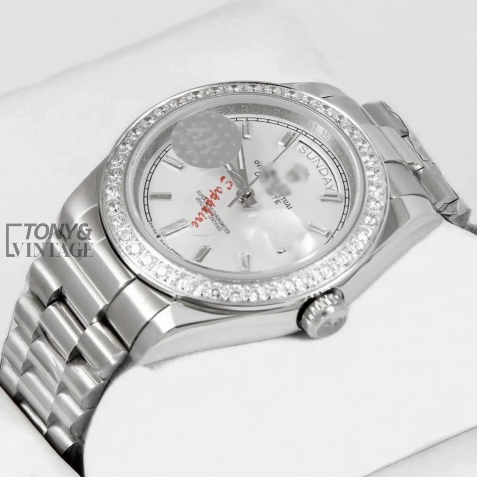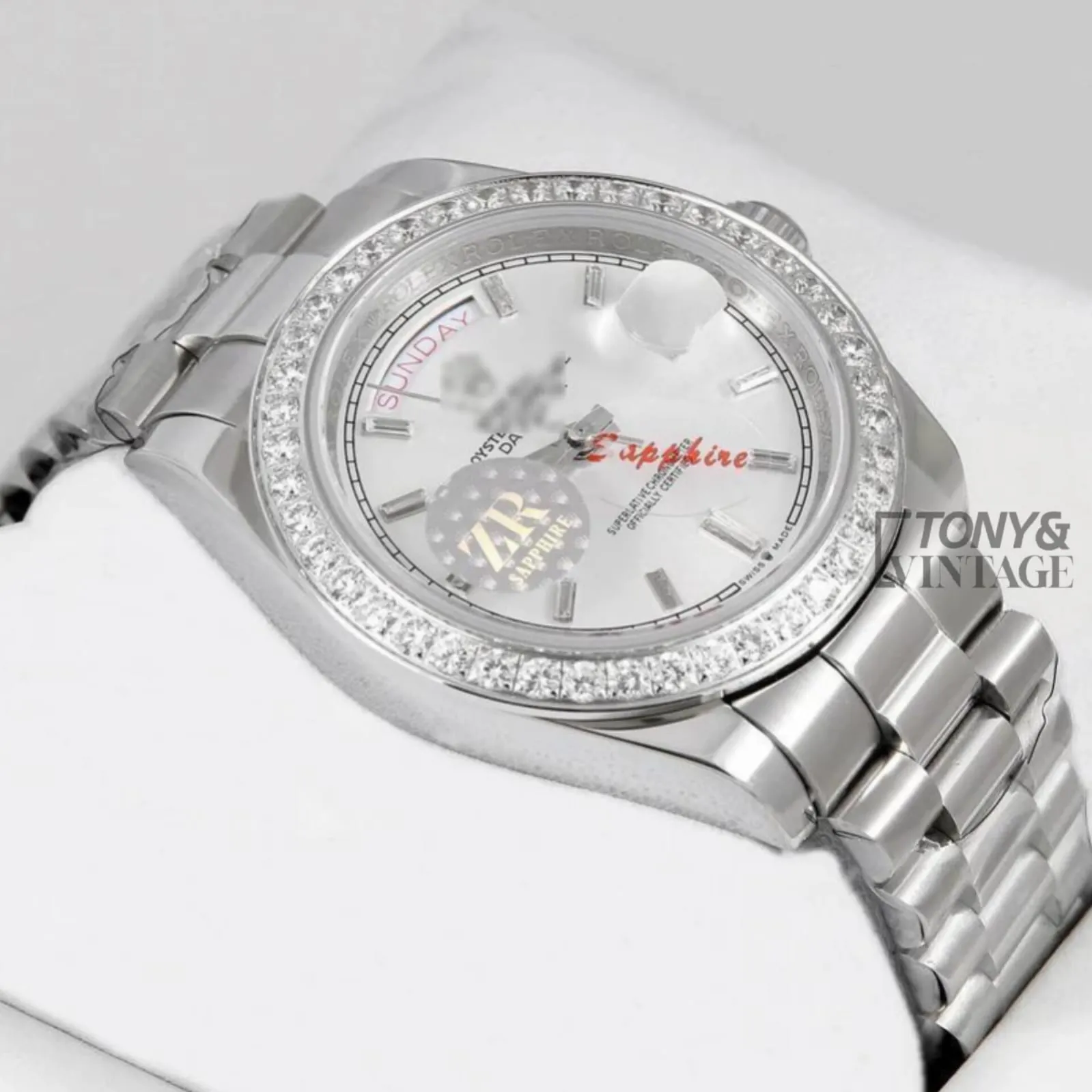 Be the first to review “All Silver Stone Bezel & White Dial Automatic Watch”