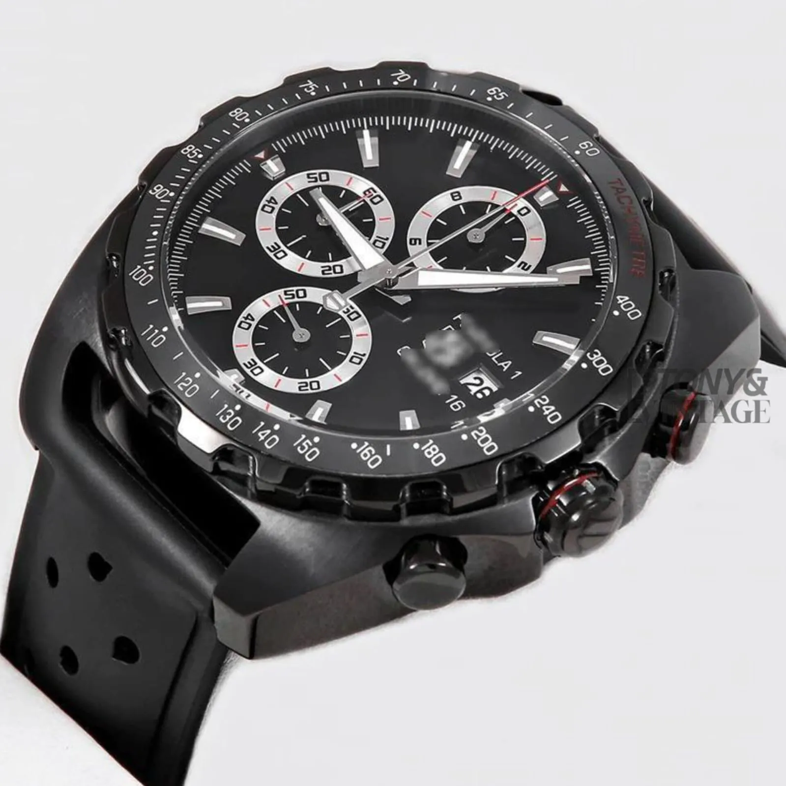 Be the first to review “Chronograph All Black Watch with Black Dotted Strap”