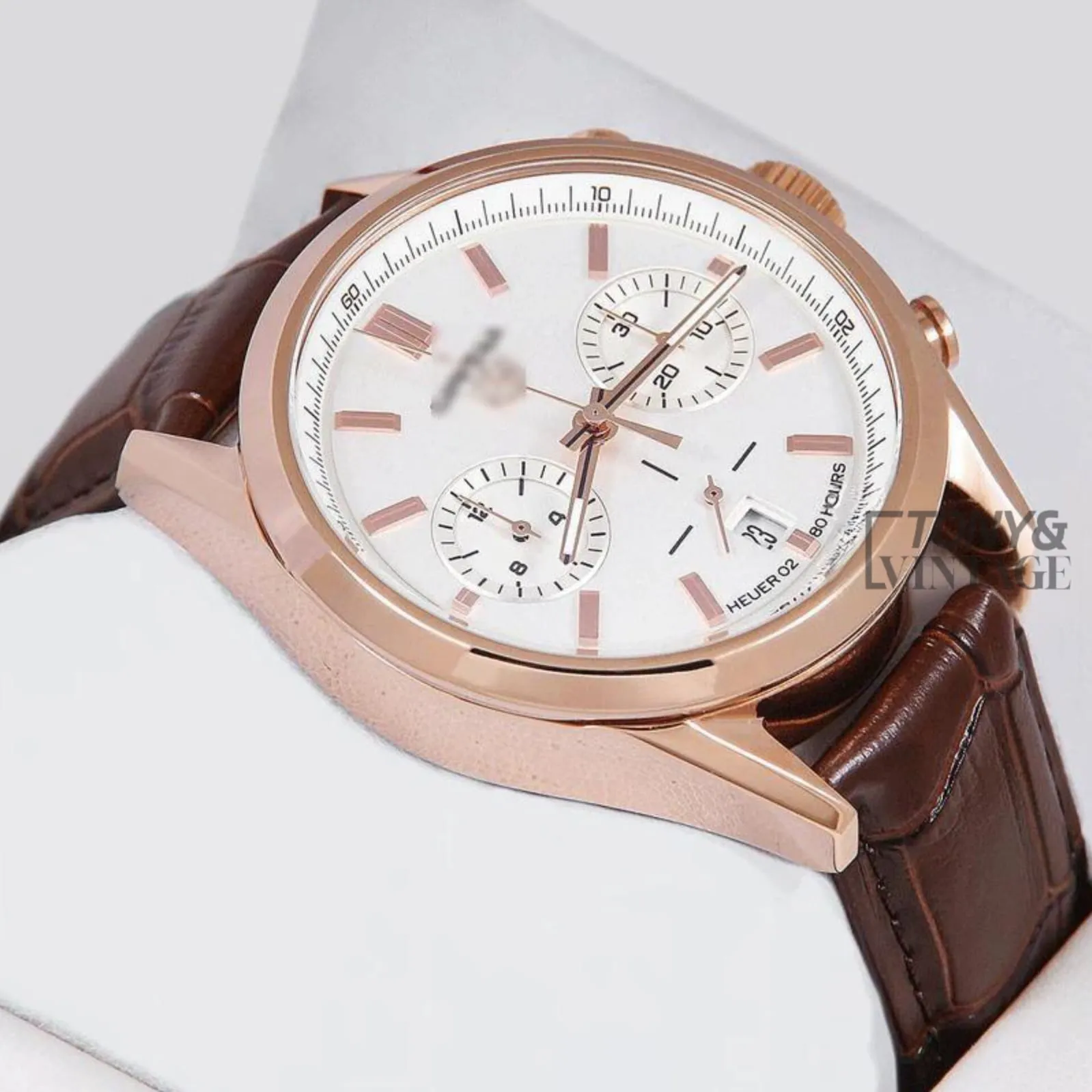 Be the first to review “Chronograph Rose Gold Case with White Dial and Brown Leather Strap Watch”