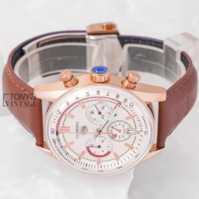 Be the first to review “Chronograph Rose Gold Watch with Peach Dial and Brown Leather Strap”