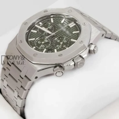 When we talk about quality, we aren’t playing games. This Chronograph Silver Green Dial Chain Watch 26240ST.OO.1320ST.08 is a masterclass in modern design. We’re talking about a 41mm high-quality 316L stainless steel case that hits that “sweet spot” on the wrist—bold, heavy, and impossible to ignore. It features that iconic forest green “Grande Tapisserie” textured dial that catches the light from every angle, all protected by scratch-resistant Sapphire Crystal Glass. Unlike those cheap replica watches that feel like plastic toys, this is AAA Master Quality. It’s powered by a precision movement with active chronograph functions, ensuring you are exactly on time for every high-stakes meeting. If you’ve been hunting for the best replica watches on the market, you just found the gold standard. View Collection to see how we’ve redefined the luxury experience for the smart investor.