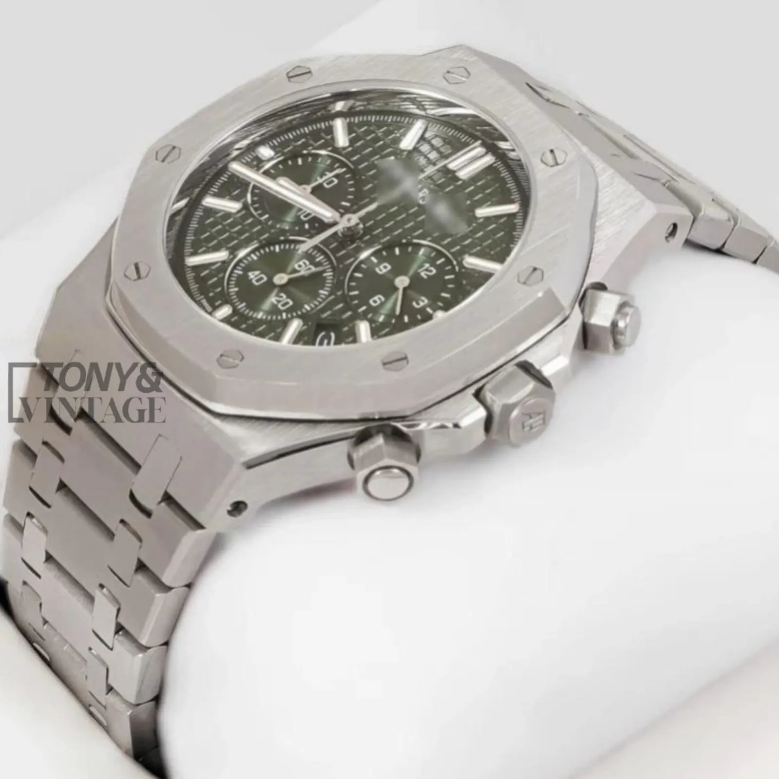 The reality is that an audemars piguet replica of this caliber gives you 99% of the experience for about 1% of the cost. Most replica watch options out there cut corners on the integrated bracelet weight or the depth of the dial texture. We didn’t. This specific replica audemars watches style piece is designed for the guy who is too busy building his empire to worry about whether a piece of equipment on his wrist costs as much as a luxury SUV. We’re so confident in this Chronograph Silver Green Dial Chain Watch 26240ST.OO.1320ST.08 that it comes with a full 1-year warranty on both the machine and the finish. You get the look, the feel, and the confidence of a world-class timepiece for a fraction of the investment. It’s an iconic design that says you’ve arrived without you having to say a single word. Stop waiting for “one day” and start wearing the watch that matches your ambition today.