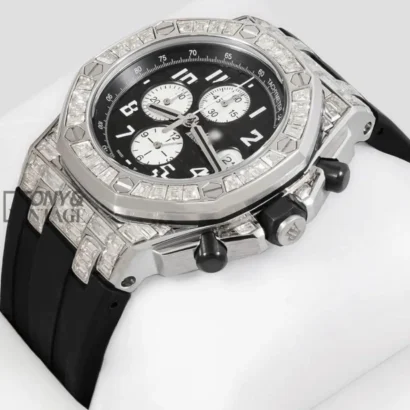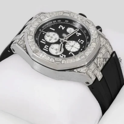 Be the first to review “Chronograph Silver Stoned Bezel Black Dial Rubber Strap”