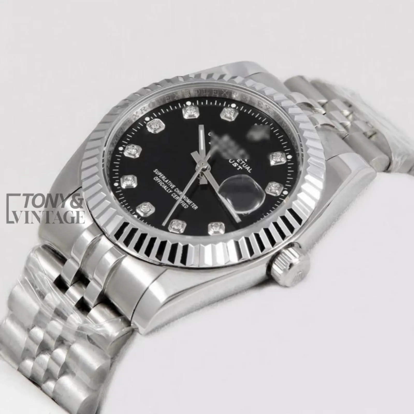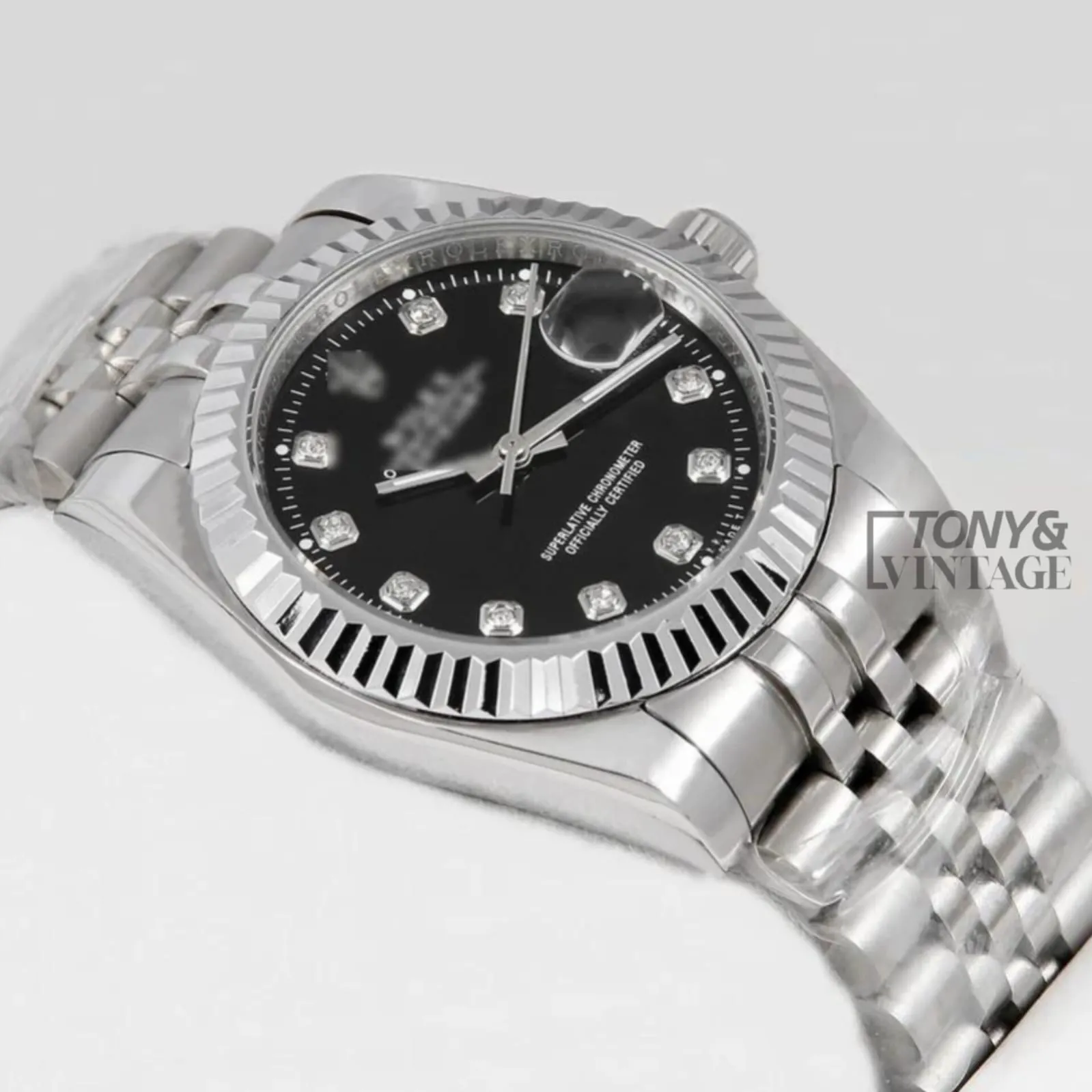 Be the first to review “Silver Automatic Watch with Black Dial and Stone Numerals”