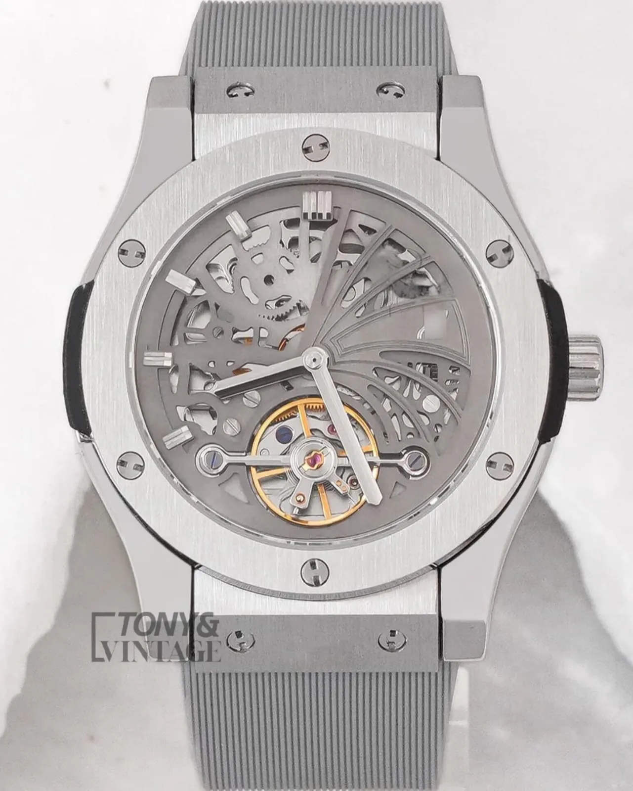 Be the first to review “Tourbillon Automatic Silver Watch With Gray Skeleton Dial”