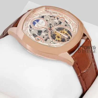 Be the first to review “Tourbillon Moon Phase Rose Gold Watch with White Skeleton Dial and Brown Leather Strap”