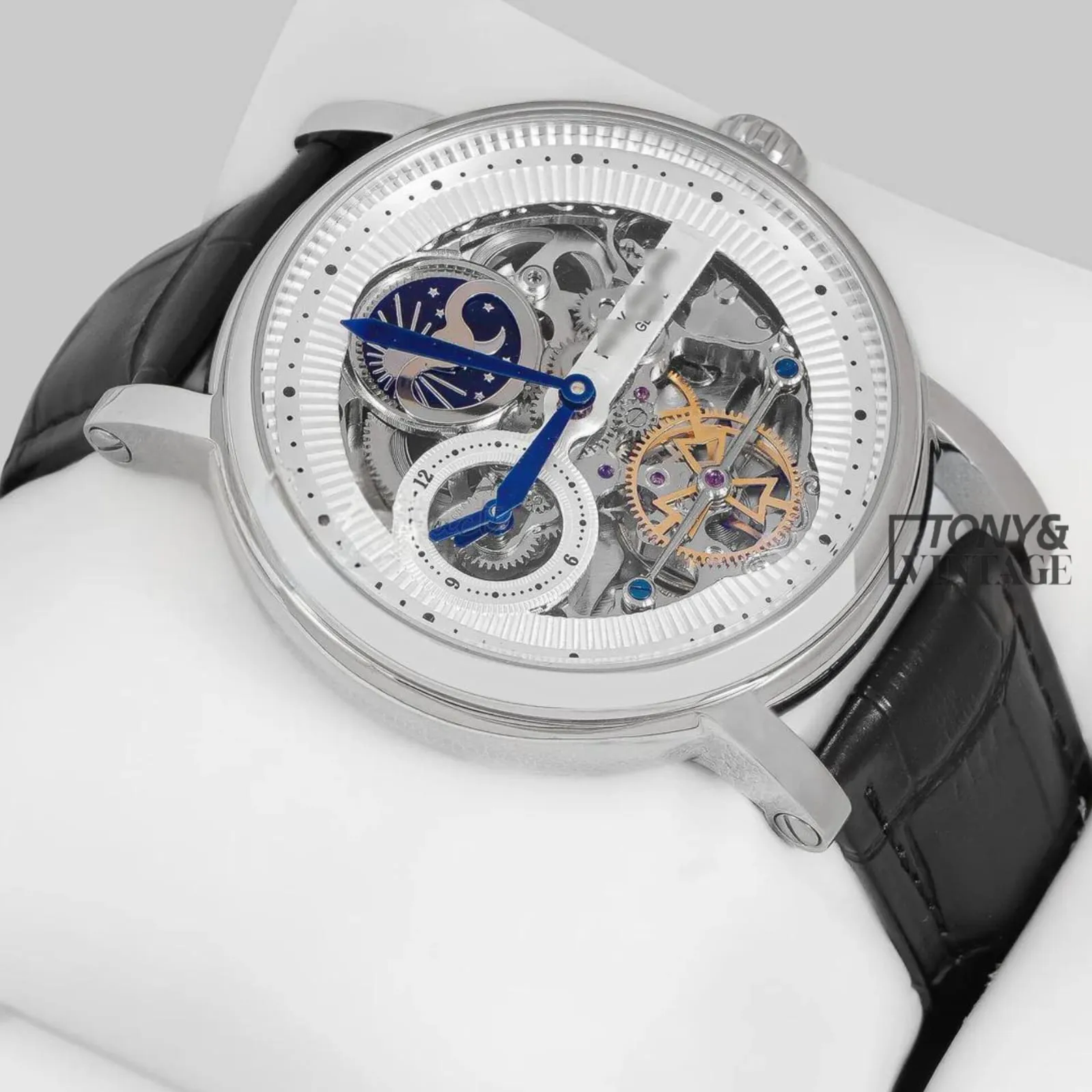 Be the first to review “Tourbillon Moon Phase Silver Watch with Skeleton Dial and Leather Strap for Men”