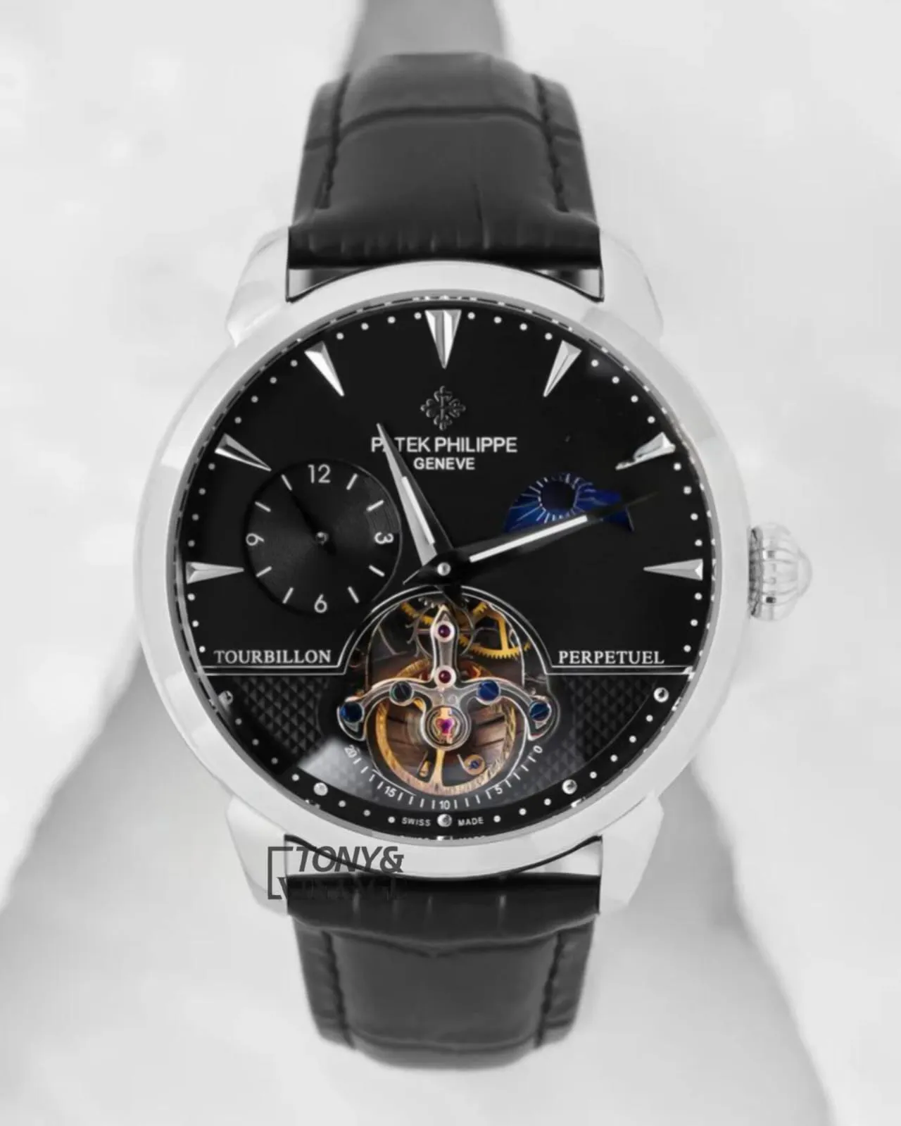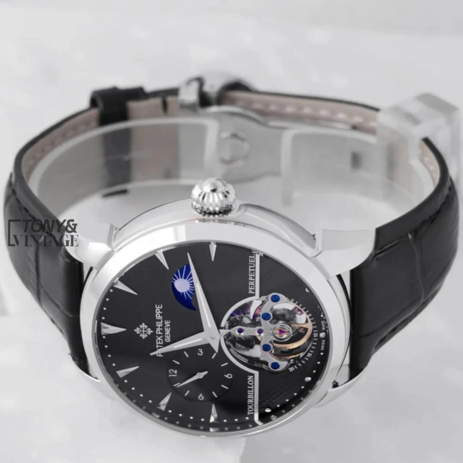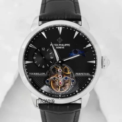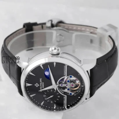 Be the first to review “Tourbillon Silver Watch with Black Dial and Leather Strap”