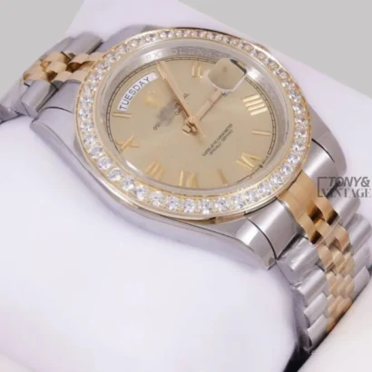 Be the first to review “Two Tone Yellow Gold Dial Stone Bezel Automatic Watch”